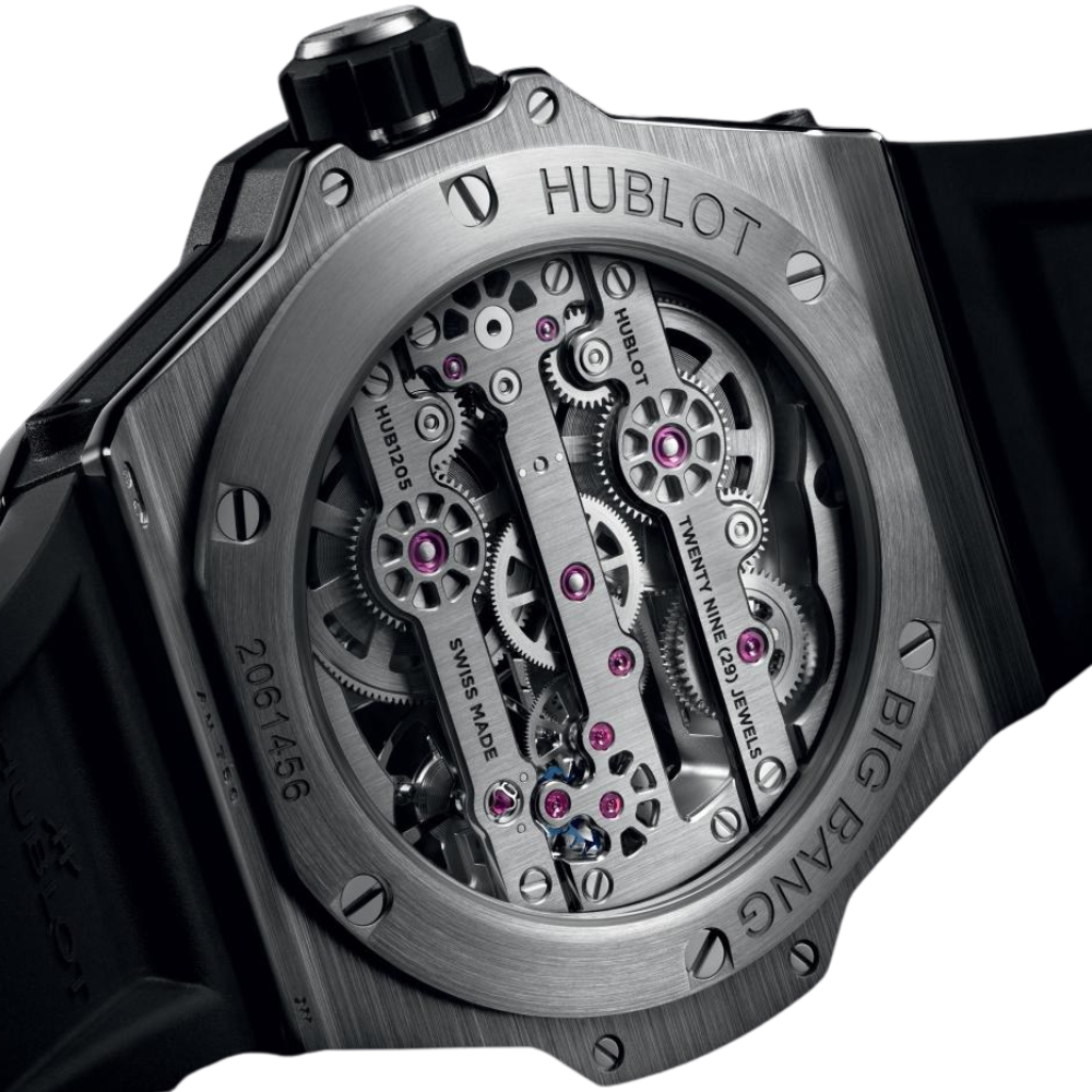 The Hublot Big Bang Meca-10 Titanium Ref. 444.NX.1170.RX embodies a high-end sports style that blends modern mechanical spirit. It stands out with a strong skeleton design, a cool grey titanium tone case combined with a black rubber strap, creating a robust, precise, and deeply technical feel. This watch is suitable for those who love technology, speed, and a decisive personality.