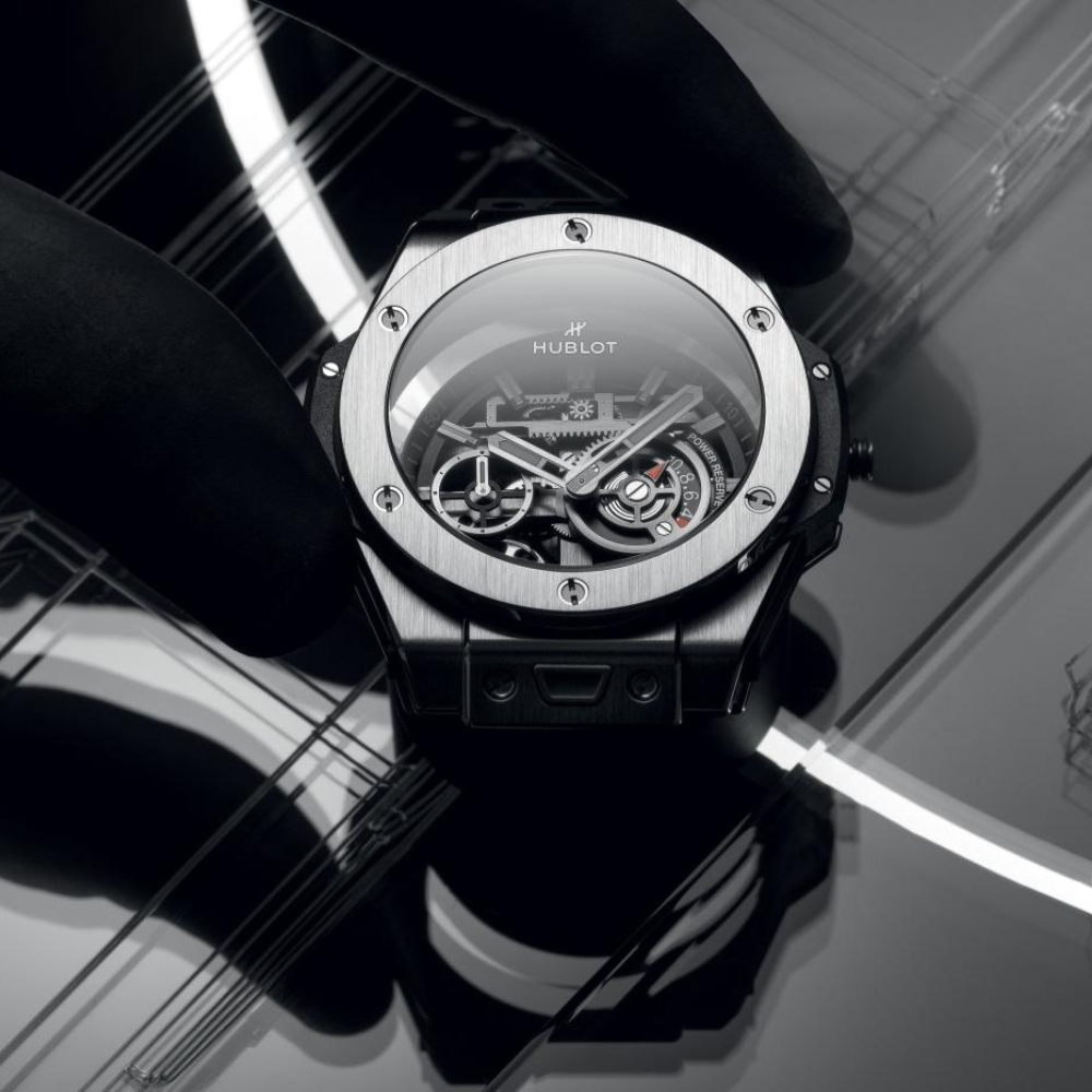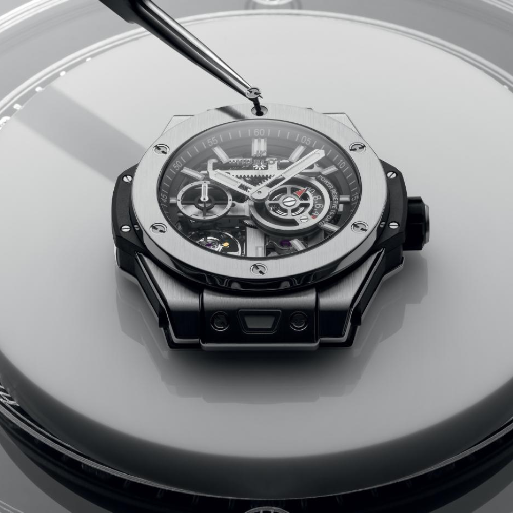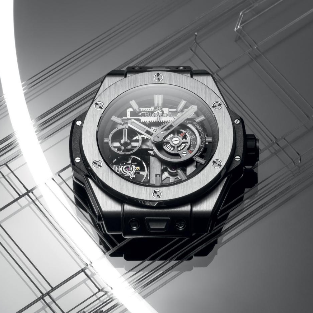Inspired by the renowned Art of Fusion philosophy of Hublot launched in 1980, the Big Bang Meca-10 Titanium model manifests the brand’s innovative spirit by combining industrial design language with the art of watchmaking. The skeleton dial showcases a miniature machine reflecting the desire to conquer time, while the lightweight and durable titanium shell is developed from advanced manufacturing technology. It is not just a watch but a symbol of pioneering thinking, precision, and the relentless spirit of moving forward of Hublot throughout its development journey.