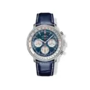 The Breitling Navitimer B01 Chronograph Ref. AB0139631C1P1 features the classic aviation sports style, distinguished by a blue chronograph dial with three balanced bright contrasting sub-dials. It showcases the signature bidirectional rotating bezel integrated with the slide rule, combined with a 904L stainless steel case finished with sharp definition. Paired with a high-quality blue leather strap featuring contrasting stitching, this model creates a strong, technical, yet elegant exterior, suitable for men who love mechanical watches with a modern non-pilot spirit.