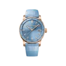 This model showcases a sophisticated and distinct aesthetic. The strap is made of high-quality pastel blue leather, offering a soft and fashionable look. The round bezel is crafted from 904L stainless steel. The pastel blue dial features a sunburst finish with slender hour markers, while luminous hands ensure visibility, creating an overall look that is artistic, neat, and different.