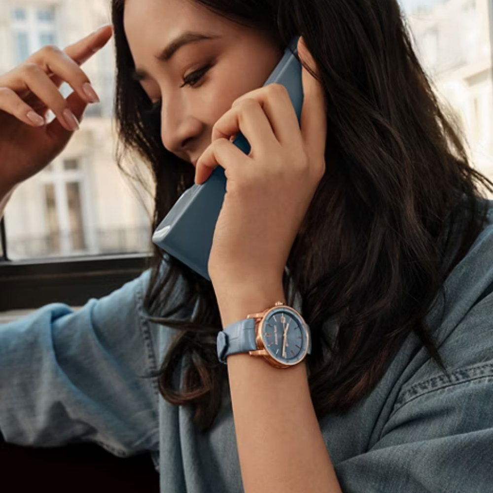 The Code 11.59 by Audemars Piguet Selfwinding Ref. 77410OR.OO.A344CR.01 features a modern elegant style blended with gentle luxury. It stands out with a 904L stainless steel case finished in a sophisticated rose gold tone, combined with a high-quality pastel blue leather strap. This combination creates a youthful, trendy, yet refined feel. With a pastel blue sunburst dial and slender multi-faceted hour markers, this model offers a look that is sophisticated, neat, and easy to wear daily, suitable for gentlemen who love elegant refinement but wish to express a distinct light aesthetic and taste.