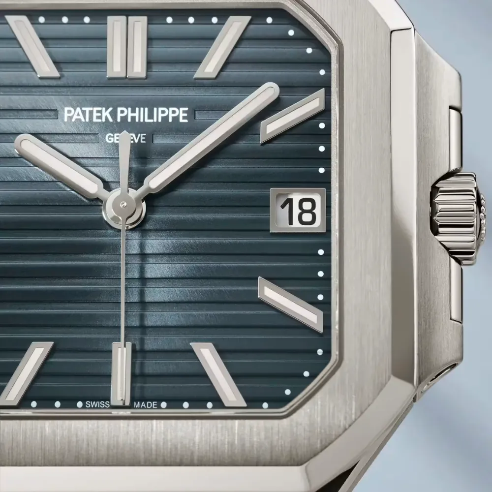 The Cubitus Ref. 7128/1G-001 White Gold represents a bold evolution in modern luxury sports watch design. Defined by its distinctive square case with softly rounded edges, this model combines contemporary aesthetics with everyday functionality. The deep blue horizontally textured dial and fully integrated stainless steel bracelet create a refined yet robust presence, designed for those who appreciate precision, structure, and understated sophistication.