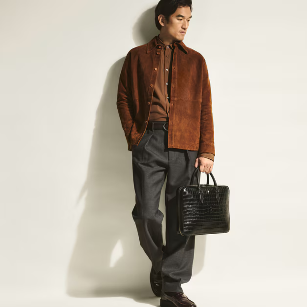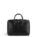 With its crocodile-embossed leather finish, full-opening interior, and smart organization for tech and office gear,