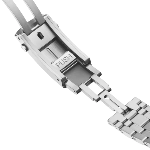 This model showcases a dynamic and robust aesthetic. The 904L stainless steel strap is designed as a seamless integrated bracelet, providing a solid grip. The unidirectional rotating bezel is made of 904L stainless steel, typical of diver watches. The blue dial features a signature wave pattern, while round and baton hands and hour markers with luminous coating ensure visibility, emphasizing a look that is both functional and stylish.
