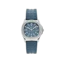 This Aquanaut Luce expresses sporty elegance with a clean, modern character. The polished 904L stainless steel case paired with a premium blue-grey rubber strap feels refined, comfortable, and easy to wear in many settings. The blue-grey dial with the signature textured pattern offers clear balance and soft sophistication, while luminous raised Arabic numerals enhance readability. The finely set synthetic-stone bezel adds a discreet sparkle—luxurious without feeling overdone.