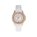 This model embodies sporty elegance tailored for women. The signature rounded Aquanaut case in a warm rose-gold tone paired with a premium white rubber strap delivers a youthful yet refined aesthetic. The white dial with vertical texture and raised Arabic numerals ensures clarity and balance, while the finely finished synthetic-stone bezel adds a subtle touch of luxury, making it suitable for daily wear across a wide range of modern lifestyles.