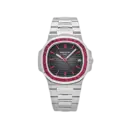 Sport luxury design with the signature integrated case and bracelet of the Nautilus collection. The gray dial combined with the baguette-set bezel creates a striking yet elegant visual balance, ideal for collectors who appreciate refined craftsmanship with a bold personal statement.