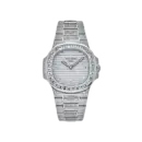 The Patek Philippe Nautilus 5719/10G-010 is a bold luxury sports watch that elevates the iconic Nautilus design with a fully stone-set aesthetic. Crafted from 904L stainless steel with an integrated metal bracelet, a slim 40mm case, and a dial entirely paved with synthetic stones, this model delivers a striking balance between heritage design and contemporary high-jewelry appeal.