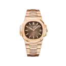 The Patek Philippe Nautilus Rose Gold 5711-1R-001 features the signature sporty luxury style of the Nautilus line, defined by a 904L stainless steel case and bracelet finished in a brilliant rose gold tone. It stands out with a seamless integrated design and a unique light/dark brown gradated dial with horizontal brushing that creates impressive visual depth. This model exudes a look that is powerful, refined, and discreetly classy, suitable for gentlemen who appreciate sustainable values and a luxurious style.