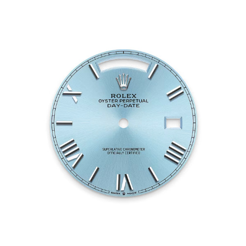This model features the distinctive Day-Date aesthetic with a President bracelet made from 904L steel. The Fluted bezel adds a sharp, refined edge, perfectly complementing the unique Ice Blue dial, a color often reserved for the most prestigious platinum models. The design balances dignity with elegance, making it an ideal choice for those who seek a powerful yet understated presence.