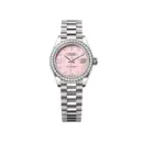This model showcases a refined feminine aesthetic. The Jubilee bracelet crafted from 904L steel ensures a smooth and flexible fit. The round bezel set with synthetic stones creates a sophisticated sparkling effect, perfectly balanced by the synthetic stone markers arranged on the pastel pink dial. The design is meticulously arranged to be harmonious and luxurious while maintaining a dignified look appropriate for daily wear or special occasions.