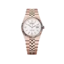 Modern, elegant Everose-inspired style — pairing a Pearl White Honeycomb dial with a fluted bezel for a sophisticated and versatile aesthetic. The unisex design suits individuals who appreciate polished, well-composed looks and desire a watch that feels luxurious yet easy to wear every day, from the office to refined casual settings.