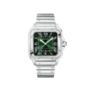 The Santos de Cartier Large Green Dial Automatic Ref. WSSA0062 brings a fresh, contemporary breath to the legendary collection. Breaking away from the traditional white dial, this version features a mesmerizing sunburst green dial that gradually darkens towards the edges, creating impressive depth. Combined with the robust 904L stainless steel case and integrated bracelet, it offers a look that is both elegant and distinctively sporty, perfect for gentlemen who love the Santos heritage but seek a unique color twist.