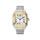 Elegant and confidently understated, the Santos de Cartier Medium Watch blends classic Parisian refinement with subtle contemporary flair. The softly rounded square case, polished bezel accented with warm golden tones, and solid steel bracelet with signature screw details create a look that is both timeless and modern, suitable for formal settings, business wear, and refined daily use.