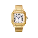 Elegant and authoritative, the Santos de Cartier Medium combines classic refinement with unmistakable character. The polished gold-toned bezel, silver dial with Roman numerals, and signature blued sword-shaped hands create a harmonious balance of tradition and modernity. Its integrated stainless steel bracelet enhances comfort and presence, making it ideal for those who appreciate timeless luxury with a confident, contemporary edge.