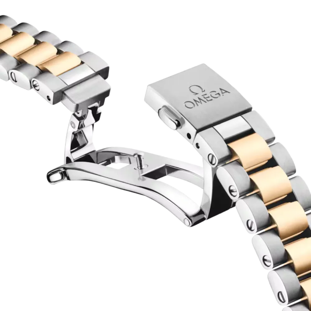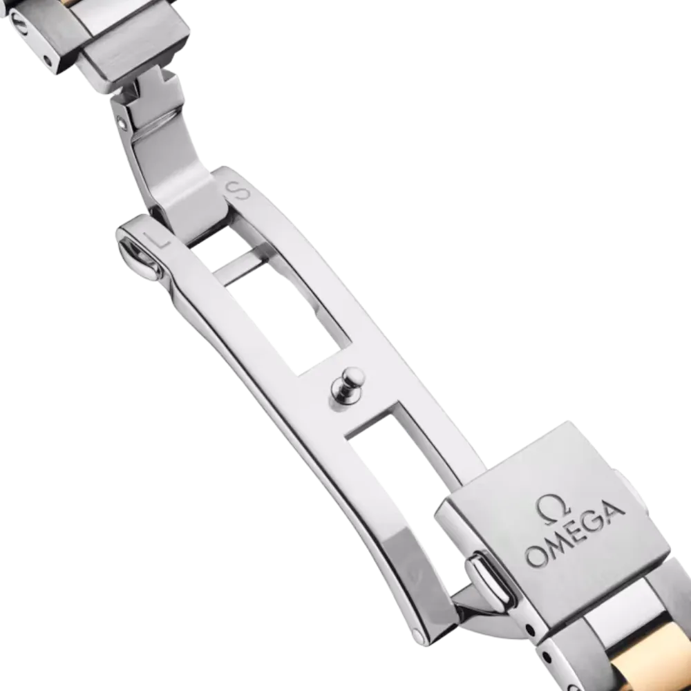 Seamaster Aqua Terra is one of Omega’s iconic lines, created to connect maritime spirit with urban elegance. This 30mm Moonshine Gold on Steel version inherits that DNA through a signature combination of steel and rose gold. The mother-of-pearl dial evokes ocean light, delivering a balanced design between history and modern minimalism, dedicated to women who love sophistication and class.