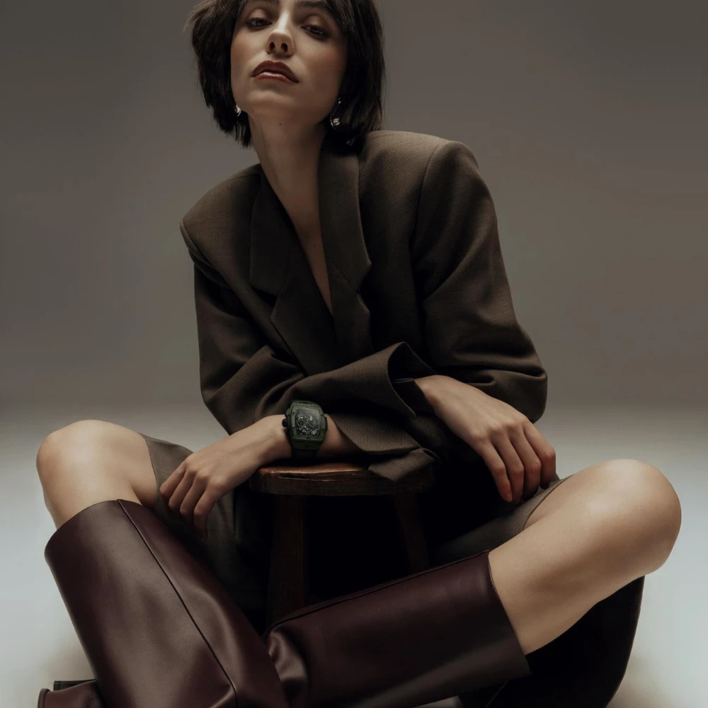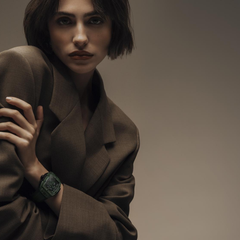 Inspired by the Spirit of Big Bang line launched to redefine the traditional tonneau shape with contemporary design language, the Dark Green Ceramic version inherits Hublot’s relentless innovative spirit from the 1980s. Combining modern materials and high-end mechanics, the army green color evokes durability, discipline, and performance. The open-heart skeleton dial showcases the mechanical movement, making this watch not just a timekeeper but a statement of personality, strength, and pioneering spirit.