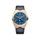 The Vacheron Constantin Perpetual Calendar Ref. 4300V/000R-B509 is a sophisticated expression of haute horlogerie, combining timeless design with one of watchmaking’s most revered complications. Featuring a polished 904L stainless steel case with a rose-gold tone bezel, a deep blue perpetual calendar dial, and an elegant navy leather strap, this timepiece is crafted for collectors who appreciate precision, heritage, and enduring elegance.
