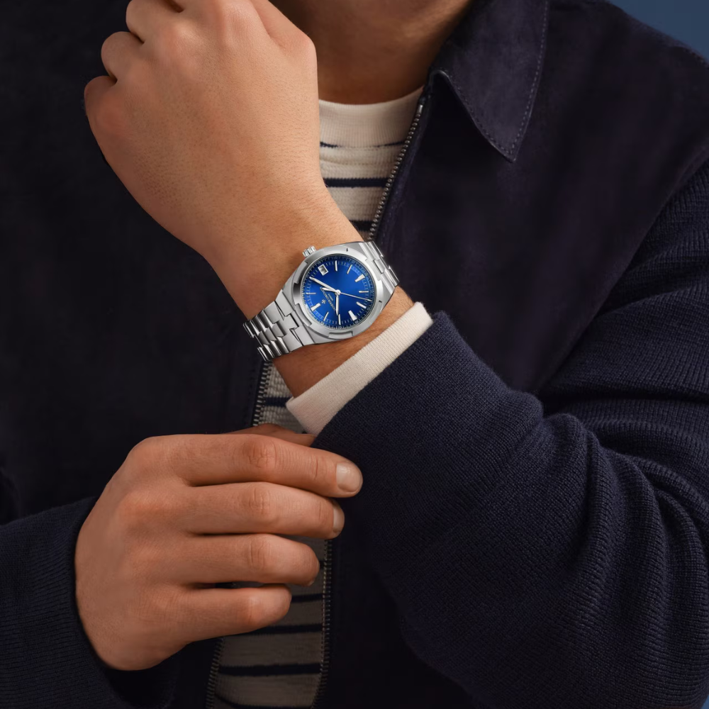 Elegant and contemporary with a subtle sporty influence, the watch features a fully integrated 904L stainless steel case and bracelet that deliver a solid yet refined presence on the wrist. The blue sunburst dial shifts beautifully under light, adding visual depth and sophistication, while the luminous baton hands and markers provide excellent legibility. This design is ideal for professionals who appreciate classic aesthetics combined with everyday versatility.